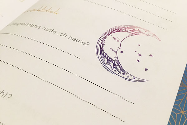Abends reflektierst du deinen Tag in dem du dir dein Erfolgserlebnis dieses Tages notierst und eine weitere Frage beantwortest. Diese wechselt von Tag zu Tag und wird sicherlich die ein oder andere Überraschung mit sich bringen. Außerdem gibt es noch ein paar Zeilen für deine Notizen zum Tag